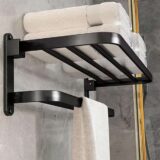Upgrade your bathroom with the perfect blend of style, functionality, and space-saving design with this Bathroom Towel Rack with Foldable Shelves. Designed to meet the needs of modern bathrooms, this rack features a sleek, matte-black finish and a three-layer matte-flat structure that brings a clean, minimalist look to your space. Whether you’re designing a contemporary spa-like bathroom or simply organizing your essentials, this towel rack delivers both elegance and convenience.